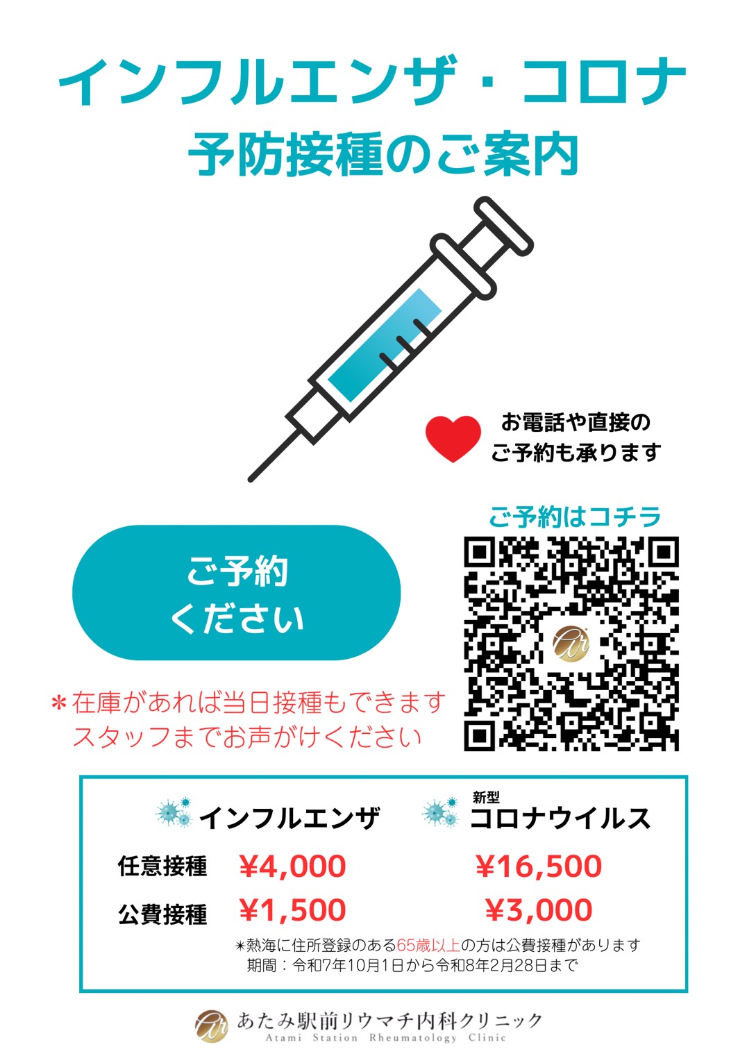 インフルエンザ・新型コロナウイルス 『 予防接種のご案内 』